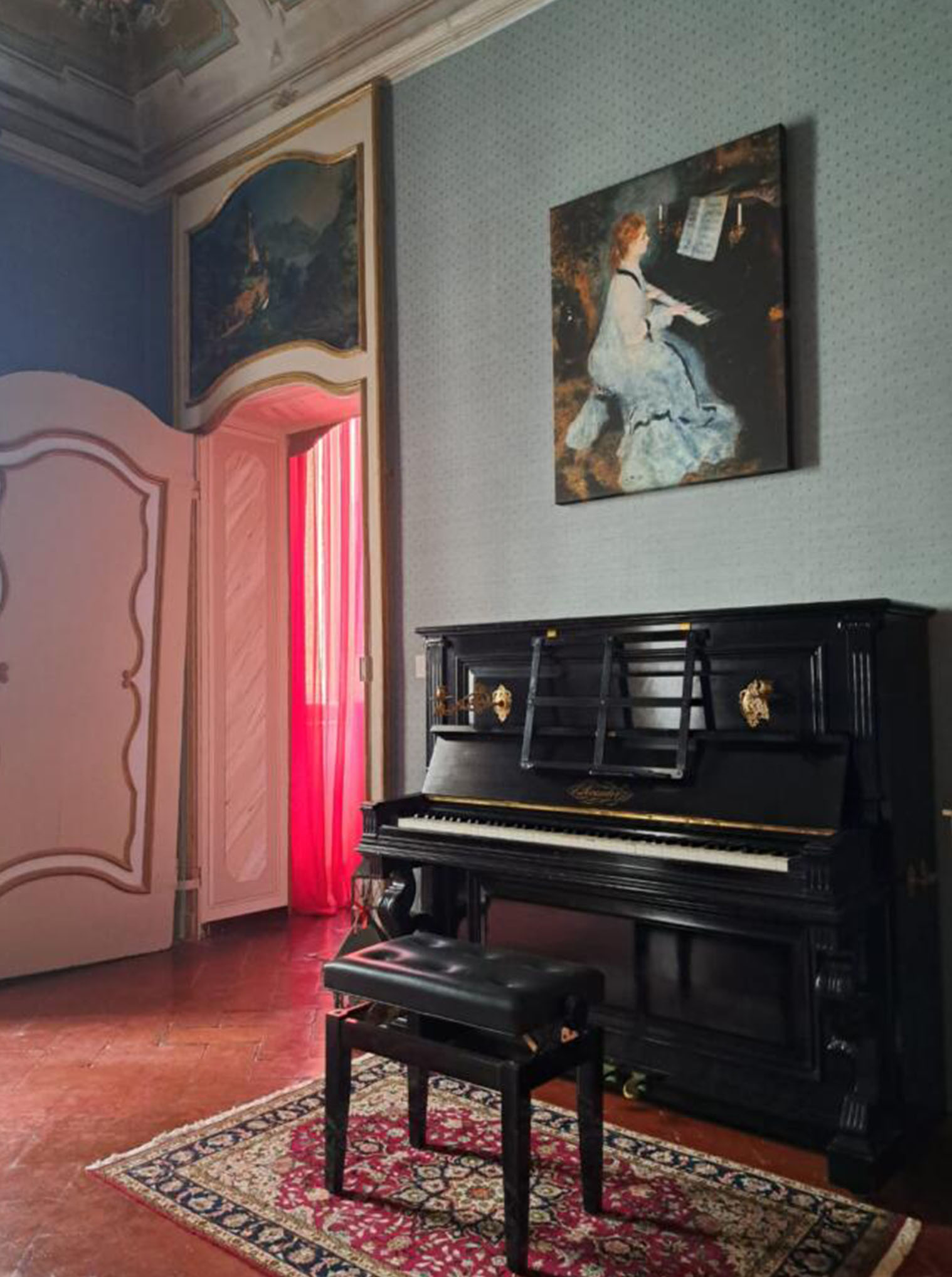 Questi elementi contribuiscono a riscostruire l’atmosfera del Palazzo nei secoli passati, quando arte, musica e vita sociale si intrecciavano nelle sale della dimora.
